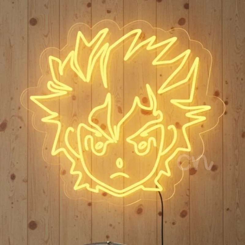 Large 24x28 anime neon sign in a glowing yellow LED finish, crafted with bold character design to bring anime-inspired energy, style, and personality into bedrooms, gaming setups, studios, cafés, or entertainment spaces.