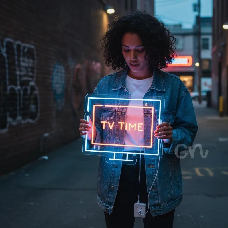 Retro TV-Inspired Neon Artwork – Fun and stylish neon wall décor shaped like a retro television with glowing “TV TIME” lettering. Perfect for gaming rooms, entertainment spaces, streaming studios, or media lounges where you want a nostalgic vibe.