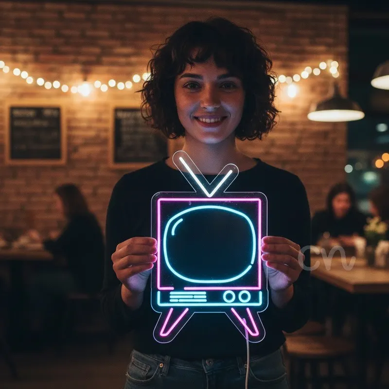 Bring a nostalgic glow to your space with this 30x18 Retro TV Neon Sign in Purple & Blue, designed to capture the essence of mid-century television with a modern neon twist. This striking LED neon wall light features a vintage TV silhouette, complete with old-school screen and antenna design, outlined in vibrant purple and blue neon tubing. Whether you’re creating the perfect gaming setup, adding ambiance to a bar, or enhancing your home theater, this neon sign instantly becomes the centerpiece of any wall.Crafted from durable LED neon flex tubing, it delivers the same eye-catching glow as traditional glass neon but without the fragility or heat. Safe to touch, energy-efficient, and designed for long-lasting performance, this sign ensures your decor stays lit up for years. At 30x18 inches, it’s perfectly sized for versatility—large enough to command attention but sleek enough to fit into a variety of spaces.Mount it easily on your wall for a glowing piece of functional art, or use it as a backdrop for streaming and creative content. Perfect for man caves, cafes, lounges, dorms, and more, this neon TV sign adds personality and retro charm to any setting. It also makes a thoughtful gift for gamers, collectors, film buffs, and lovers of vintage-inspired decor.With its blend of nostalgic style, modern LED technology, and versatile application, this Retro TV Neon Sign is more than just a light—it’s an atmosphere. Create your own throwback vibe while enjoying the benefits of safe, energy-saving neon that will keep glowing night after night.