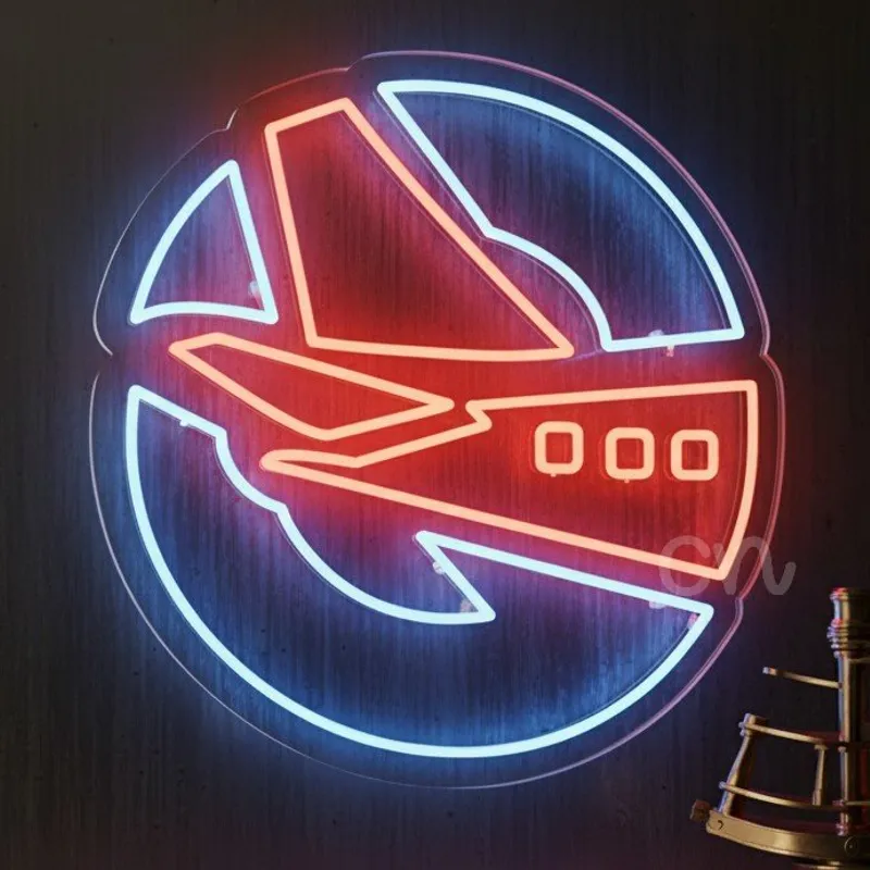 Take flight in style with the Airplane Neon Sign (21x20)—a bold, glowing decor piece that brings aviation energy to any space. Designed with a red airplane outline framed by a striking blue circle, this LED neon light makes an eye-catching wall decoration for bedrooms, gaming setups, bars, dorms, or travel-inspired spaces.Made with durable, flexible LED tubing, this airplane neon sign offers the vivid glow of traditional glass neon without the risks of heat, fragility, or harmful gases. It’s eco-friendly, long-lasting, and safe for home use, making it perfect for kids’ rooms, teen bedrooms, or adult aviation enthusiasts.The plug-in powered design means no batteries are required—just mount it on your wall, plug it in, and let your room glow. Whether you’re decorating a child’s room with a love for airplanes, upgrading your gaming corner, or adding a fun touch to a bar or man cave, this airplane neon LED wall light creates instant ambience.This airplane neon sign also makes a fantastic gift for pilots, travelers, gamers, and decor lovers, especially for birthdays, holidays, or housewarmings. Its aviation-inspired silhouette sparks imagination, adventure, and creativity, making it more than just a light—it’s wall art with personality.Why you’ll love it: Striking airplane design – Bold red plane with glowing blue circle backdrop,Versatile aviation decor – Great for bedrooms, gaming setups, bars, and travel lovers,Plug-in convenience – Easy to install, no batteries needed,Premium quality build – Safe, energy-efficient, and long-lasting LED flex tubing,Perfect gift – Unique decor piece for kids, pilots, and aviation enthusiasts.Bring the skies indoors with the Airplane Neon Sign—a glowing symbol of exploration, adventure, and modern style.