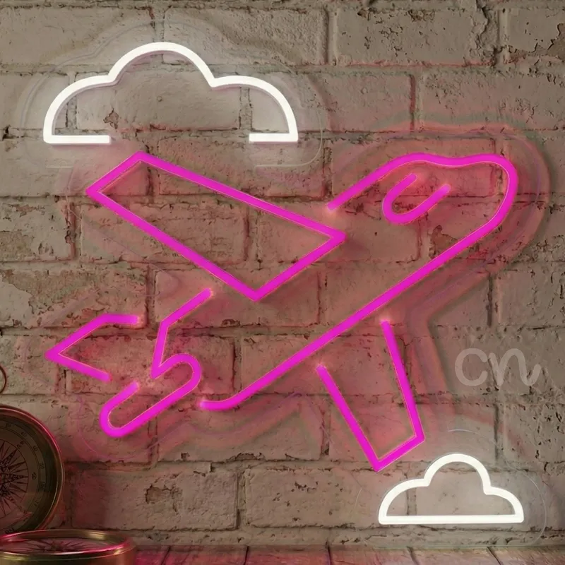 Illuminate your space with the Airplane with Clouds Neon Sign in Pink, a striking 20x20 inch LED neon wall light designed for aviation lovers and decor enthusiasts. This handcrafted neon sign captures the adventurous spirit of flight with its airplane silhouette and glowing cloud details, making it an ideal centerpiece for bedrooms, gaming setups, living rooms, cafes, or themed studios. Built with modern LED neon flex, it delivers the vibrant glow of traditional neon while remaining safe, durable, and energy efficient.The sleek pink glow adds charm and creativity to any wall, whether you are decorating a child’s bedroom, enhancing your office decor, or designing an aviation-themed lounge. Unlike glass neon, LED neon flex is lightweight, shatter-resistant, and cool to touch, ensuring easy handling and safe use in any environment. Simply plug it in for steady, flicker-free illumination that brightens up your surroundings instantly.Perfect as a thoughtful aviation gift, this airplane neon light will delight pilots, frequent travelers, and children who dream of flying. Its compact 20x20 inch size makes it versatile enough for both large and small spaces, while the playful airplane-with-clouds design provides a unique conversation piece. Hang it as a feature wall light, use it as ambient bedroom lighting, or incorporate it into a gallery wall to create an inspiring visual effect.Installation is quick and straightforward, with no need for batteries. The sign connects easily to a standard plug, giving you a long-lasting neon glow without maintenance hassles. Designed for both practicality and artistry, this airplane neon wall art adds a modern yet nostalgic touch to your home or commercial decor.Whether for personal enjoyment, gifting, or interior design, the Pink Airplane with Clouds Neon Sign is more than just a light — it’s a statement of adventure, creativity, and modern style.