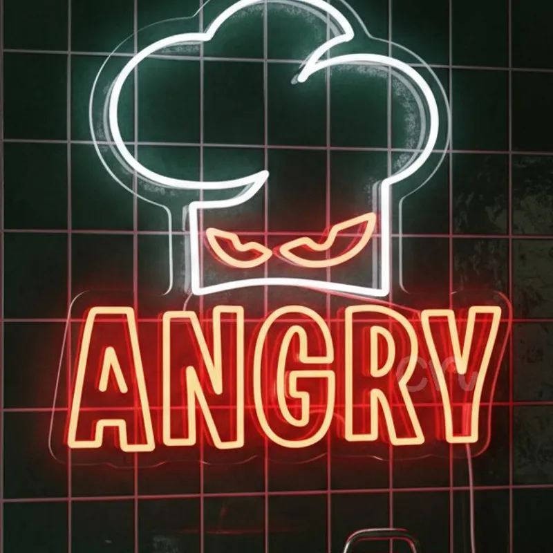 Bring bold energy and playful attitude to your space with the Angry Chef Neon Sign, a premium LED flex neon wall light designed for kitchens, cafes, restaurants, and home decor. Shaped with a striking chef hat neon sign and angry face expression, this plug-in angry chef light creates a unique statement that combines humor, style, and modern design.Crafted with high-quality flex LED neon technology, this angry chef neon board provides a safe, durable, and eco-friendly glow that is brighter and longer lasting than traditional neon. No batteries required – this plug in chef neon decor works directly with a power source, ensuring reliable performance while staying energy-efficient. Lightweight and shatterproof, it’s designed to last, making it a premium plug-in chef sign you can trust for your walls.Whether you are decorating a trendy cafe, designing a restaurant interior, or adding a fun touch to your kitchen at home, this custom angry chef neon is the perfect centerpiece. The bold lettering and expressive design make it eye-catching, while the soft LED glow adds ambient lighting for the perfect vibe. It doubles as chef neon wall art and functional room lighting, making it ideal for Instagram-worthy backdrops, kitchen decor themes, and modern wall displays.This angry chef LED sign is simple to install – just plug it in and mount it on any wall. From kitchen angry chef signs to novelty wall mounted chef neon boards, it’s versatile enough to fit living rooms, bars, studios, or event spaces. The flexible neon chef decor design ensures safety with no heat emission, making it child-friendly and suitable for everyday indoor use.Looking for a memorable gift? Surprise a food lover, chef, gamer, or decor enthusiast with this angry face chef light.