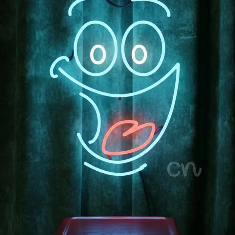 The Cartoon Face neon sign is a vibrant and playful decor piece designed to spread joy and add a touch of humor to any space. Featuring a cheerful face outlined in bright blue, expressive eyes glowing in white, and a vivid red tongue, this multicolor neon sign captures attention instantly. Measuring 20x15, it is compact enough to fit seamlessly into smaller spaces while still providing an eye-catching presence. The animated design with its fun expression makes it perfect for bedrooms, game rooms, children’s play areas, cafes, studios, and party venues. Its multicolor glow adds life to any environment, creating a lively ambiance whether used for daily decoration or special events.Crafted with premium LED neon tubing, the Cartoon Face sign combines the nostalgic look of classic neon with the benefits of modern technology. Unlike traditional glass neon, it is energy-efficient, safe to handle, and built to last. The LED tubes generate minimal heat and consume significantly less power, making the sign suitable for long hours of use. Its durable construction ensures reliable performance, providing bright and consistent illumination that maintains its charm over time.ng allows easy mounting, making it versatile for permanent wall installations or temporary event setups. Its smooth edges and clean finish add a professional tmaintaining the playful appeal of the cartoon-style face. Whether placed in a personal space to add character or used in social environments to create a fun atmosphere, this neon sign delivers both decorative charm and practical reliability.Ideal as a unique gift, quirky centerpiece, or conversation starter, the Cartoon Face neon sign blends style, creativity, and durability. It is an excellent choice for those who love expressive and animated decor. With its combination of bright colors, safe LED technology, and lasting glow, it is more than just a sign—it is a piece designed to spread happiness and fun wherever it shines.