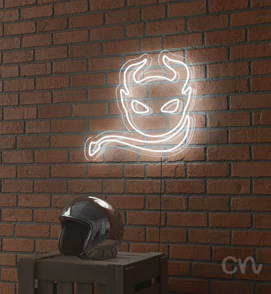 Custom Neon | Devil Face Neon Sign | 23x24 Inches | White Neon Sign for Room Decor