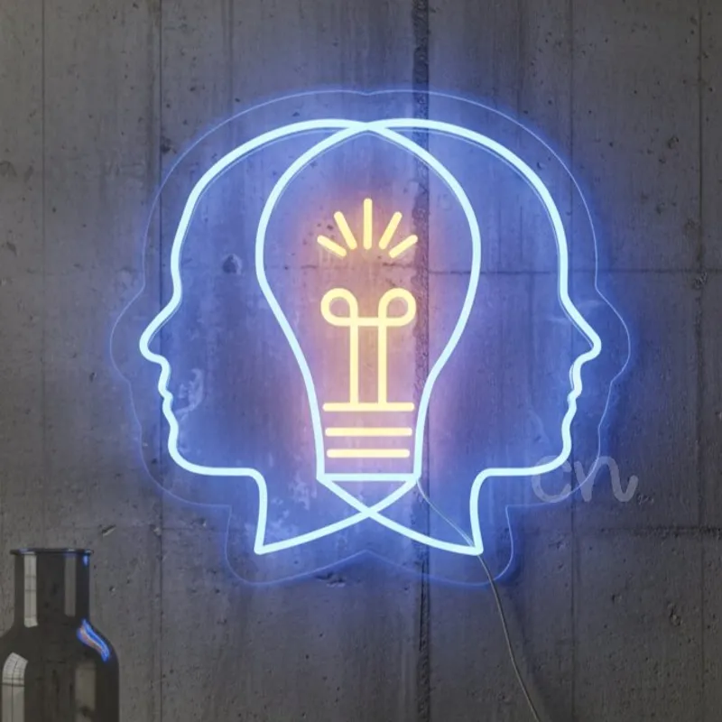 Showcase collaboration and creativity with this neon flex teamwork sign, featuring a glowing bulb between two profiles. Perfect as teamwork neon flex light for offices, classrooms, or creative studios.