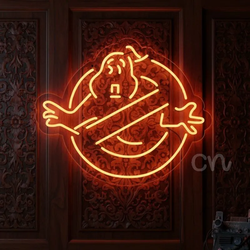 Bring the spirit of ghost-busting fun into your home, bar, or event space with this bold 20x24 Ghostbusters-inspired neon sign. Featuring the instantly recognizable ghost trapped within the classic “no†circle symbol, this LED neon sign delivers a nostalgic yet modern glow perfect for fans of the supernatural comedy classic. Outlined in bright orange LED neon flex, it shines with vivid energy while capturing the playful yet spooky charm of the Ghostbusters logo.Crafted from high-quality, shatterproof LED tubing and mounted on a durable, transparent acrylic backing, this neon sign is designed for long-lasting durability and easy installation. Measuring 20x24 inches, it’s large enough to command attention as a centerpiece, while still being versatile enough to fit in entertainment rooms, themed restaurants, home theaters, or party venues.Unlike fragile glass neon, this LED alternative stays cool to the touch, is eco-friendly, and consumes significantly less power—making it a safe and cost-effective choice for both indoor and commercial use. Whether you’re hosting a Halloween bash, decorating a movie-themed space, or simply showcasing your Ghostbusters fandom, this neon sign brings instant character and atmosphere.From its iconic design to its bright, energy-efficient glow, the 20x24 Ghostbusters-inspired neon sign is more than just decor—it’s a conversation starter, a nostalgic throwback, and a glowing tribute to one of the most legendary pop culture franchises of all time.