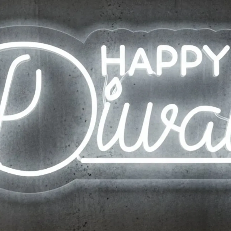 Celebrate the festival of lights in a modern yet traditional way with this Happy Diwali neon sign, designed to illuminate your festive decor with grace and charm. Featuring “Happy Diwali†in elegant lettering with candle flame accents, the sign glows in radiant white LED, symbolizing purity, positivity, and celebration. Measuring 24x11 inches, it is compact yet eye-catching, making it perfect for homes, shops, restaurants, temples, cultural centers, and festive event spaces. The soft white glow creates a soothing and festive ambiance, complementing both traditional and contemporary interior styles. Built with energy-efficient LED tubing, this neon sign provides consistent brightness with minimal electricity use, making it suitable for extended festive hours. Its lightweight design allows for easy installation on walls or backdrops, ensuring quick setup for temporary or permanent arrangements. Crafted with durable materials, the sign is reusable, retaining its brilliance across multiple seasons. Whether used as a centerpiece, a photo backdrop, or a welcoming element, this Happy Diwali neon sign is versatile for any setting. It also makes a thoughtful gift option for family, friends, or business owners, combining blessings of prosperity with stylish LED decor.