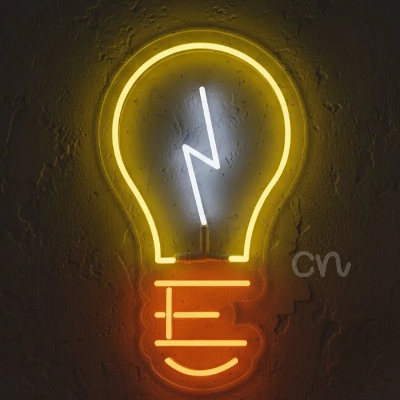 The yellow outline forms the classic bulb silhouette, creating a universally recognizable symbol of bright ideas. The white lightning bolt at the center emphasizes power, inspiration, and sudden bursts of creativity, while the orange base introduces contrast and warmth for a balanced, modern aesthetic. Together, the tri-color design transforms a simple concept into a visually engaging piece of wall art that is both symbolic and stylish.Engineered with advanced LED neon technology, this sign replicates the nostalgic glow of traditional neon while offering greater safety, efficiency, and longevity. Unlike fragile glass tubes, LED neon is made from flexible, durable materials that resist breakage, making it practical for daily indoor use. The light output is bright yet gentle on the eyes, ensuring an inviting atmosphere without glare. Low heat emission makes the sign safe to touch, and its energy-saving design helps reduce electricity costs compared to conventional lighting.This sign is also perfect for events and celebrations. From themed parties to product launches, weddings, or gallery exhibitions, the bold lightning-bolt design becomes a focal point that guests will photograph and remember. Its balance of symbolic meaning and decorative impact makes it not only a source of illumination but also a powerful visual statement.