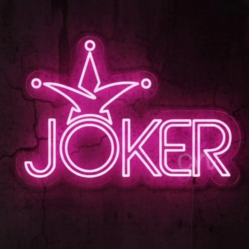 This neon sign features the word “JOKER†with a detailed jester hat in striking pink LED, making it a bold, playful accent ideal for bars, game rooms, casino spaces, or themed entertainment events.