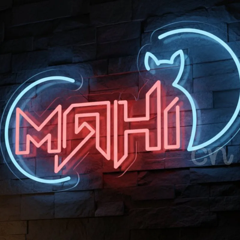 Custom Neon | MAHI Name Neon Sign with Cat Outline...