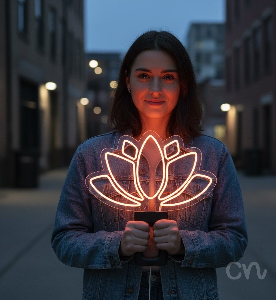 Elevate your space with our handcrafted neon sign displaying neon lotus flower in a vibrant orange glow. Available in a striking 16x25 size, this eye-catching wall art lighting is perfect for adding an artistic and calming ambiance to any aesthetic room, boutique, or lounge. The warm orange hue creates a lively yet serene atmosphere, making it ideal for home decor, spa environments, or themed cafes. Crafted with premium transparent acrylic backing and safe silicone LED tubing, this personalized neon light offers a mesmerizing glow with a lifespan of over 50,000 hours. Energy-efficient and designed for indoor use, it comes with a 12V adapter—no batteries needed—and a 1-year warranty for peace of mind. Ideal as a motivational wall light, a nature-inspired centerpiece, or a unique gift, this handmade neon sign brings both style and tranquility to your space. Perfect for wall art lighting that captures attention and evokes serenity.