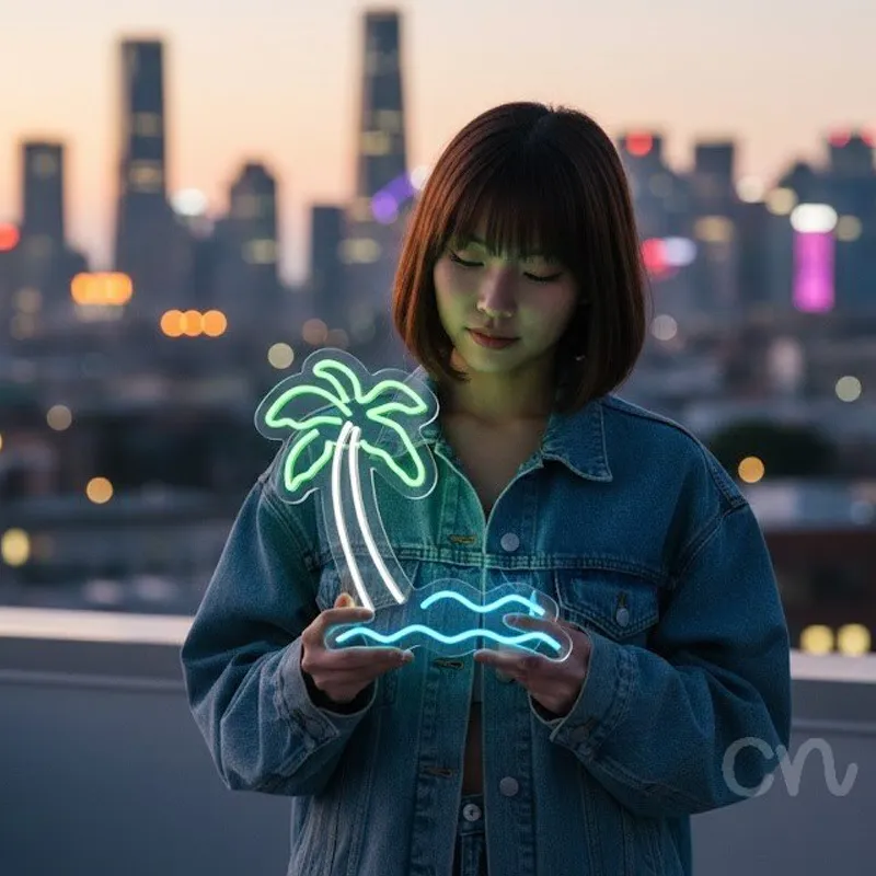 Custom Neon | Palm Tree and Waves Neon Sign |...
