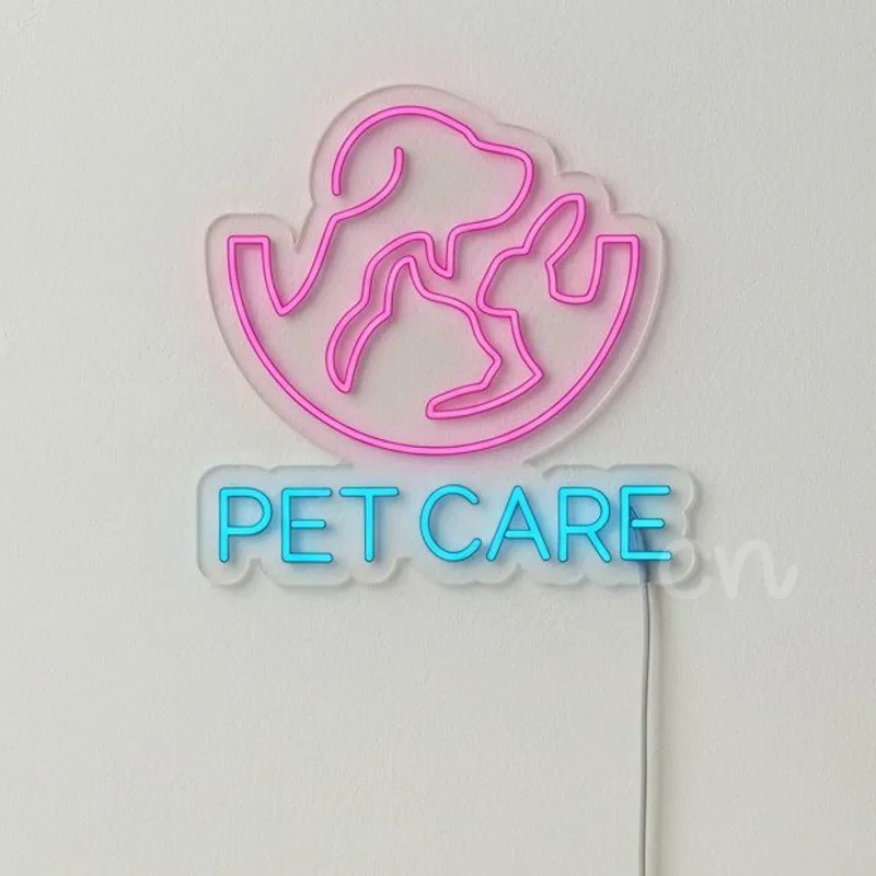 Bring warmth, trust, and professionalism to your pet-related business with the 22x22 Inch Pet Care Neon Sign, designed with a unique outline of a dog, cat, and rabbit enclosed in a protective arc. This heartwarming design instantly communicates compassion and inclusivity, making it the perfect signage for veterinary clinics, grooming salons, adoption centers, pet shops, and animal hospitals.The vibrant pink and blue LED neon glow makes this sign highly visible, day or night, helping businesses attract more customers while creating a welcoming and pet-friendly environment. Unlike fragile traditional neon, this LED neon light is energy-efficient, safe to touch, and shatter-resistant, ensuring reliable long-term use in spaces where pets, families, and children are present.With its 22x22 inch size, the sign is large enough to be seen from a distance, yet balanced for storefronts, reception areas, or wall displays. It’s mounted on a durable acrylic backing and features eco-friendly LED tubing with an impressive lifespan of up to 50,000 hours.Easy to install, the sign comes with pre-drilled holes and mounting hardware, making it simple to place in windows, behind counters, or on walls. Whether indoors or facing outward, it draws attention while enhancing your brand image as a trustworthy pet care provider.Perfect for animal lovers and businesses alike, this Pet Care Neon Sign 22x22 Inch is more than just lighting—it’s a symbol of care, compassion, and professionalism that elevates your space and makes a lasting impression on customers.
