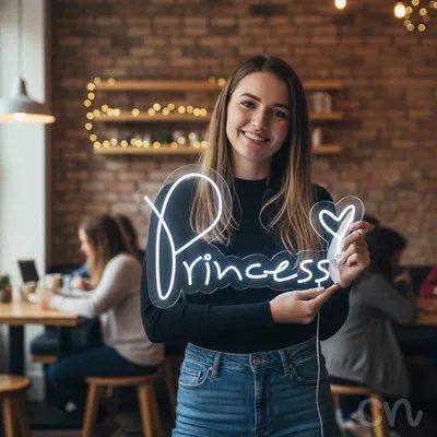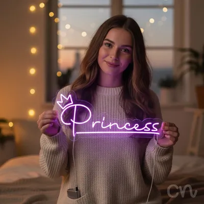 Custom Neon | Princess Neon Sign | 22x35 | Warm White Neon Sign for Bedroom Decor