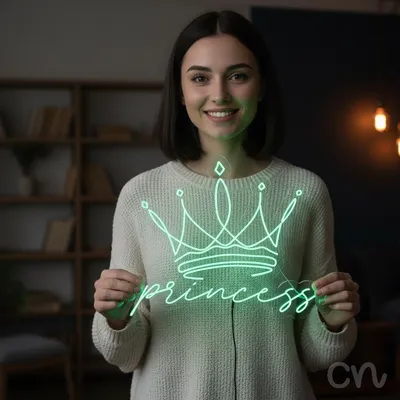 Custom Neon | Princess Neon Sign | 30x36 | Green Neon Sign for Bedroom Decor