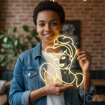 Custom Neon | Princess Design Neon Sign | 32x28 | Yellow Neon Sign for Home Decor