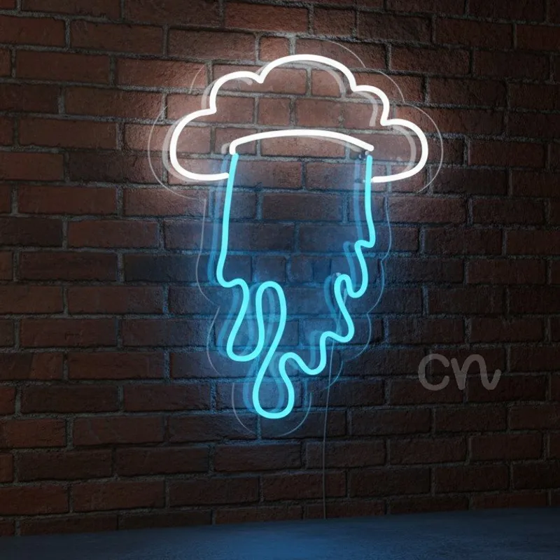 Brighten your walls with the Rain Cloud Neon Light Sign, a stunning blend of art and illumination. Designed in a unique dripping rain style, this cloud rain neon sign is made from premium neon flex that is durable, lightweight, and safe compared to traditional glass neon. Measuring 24x18 inches, it makes a bold statement as both electric neon wall art and a functional light source for any room.
