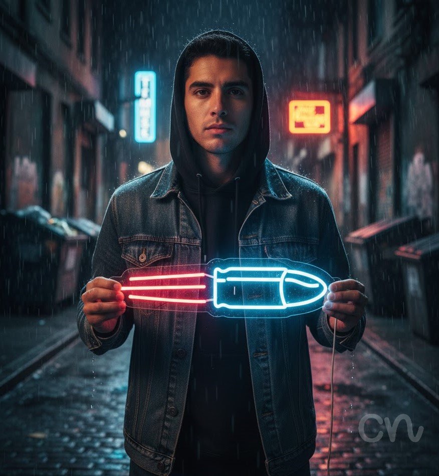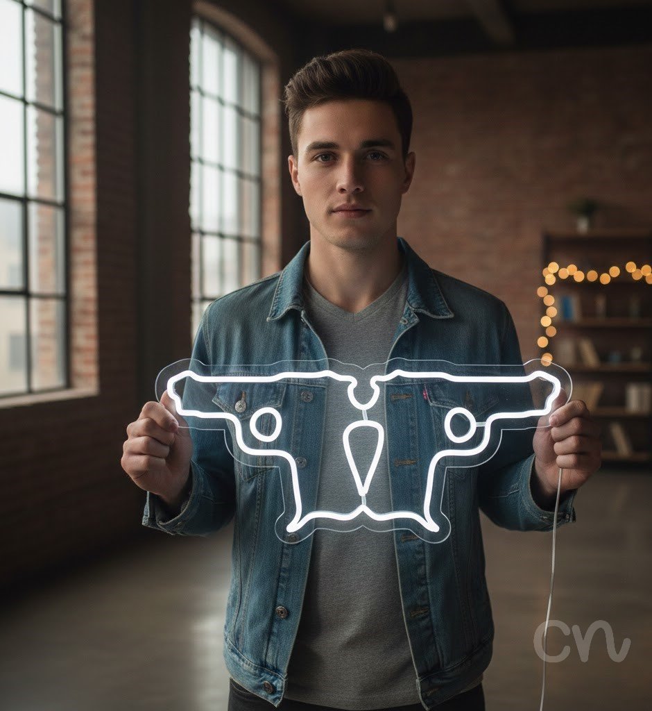 Custom Neon | Bullet Design Neon Sign | 6x24 Inches | Red and Ice Blue Neon Sign