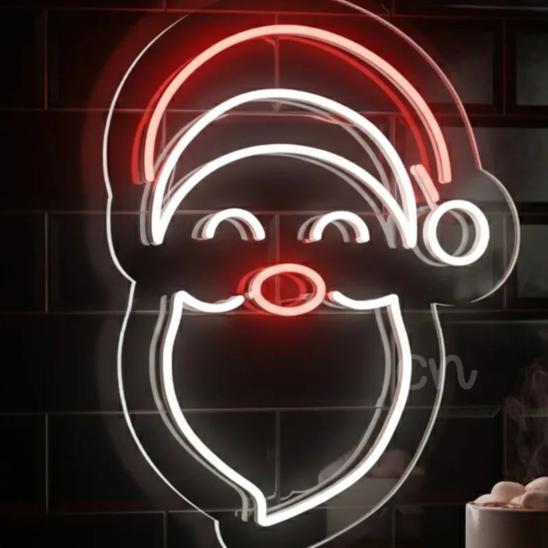 Energy-Efficient LED Glow – Designed with advanced LED neon tubing, this Santa Face neon sign produces a bright red and white glow while using significantly less power than traditional neon lights,
