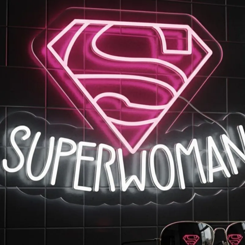Empowering Superwoman Design – Featuring the iconic Superwoman-inspired emblem, this neon sign embodies strength, confidence, and resilience, making it the perfect centerpiece for any space that celebrates feminine empowerment and self-expression.