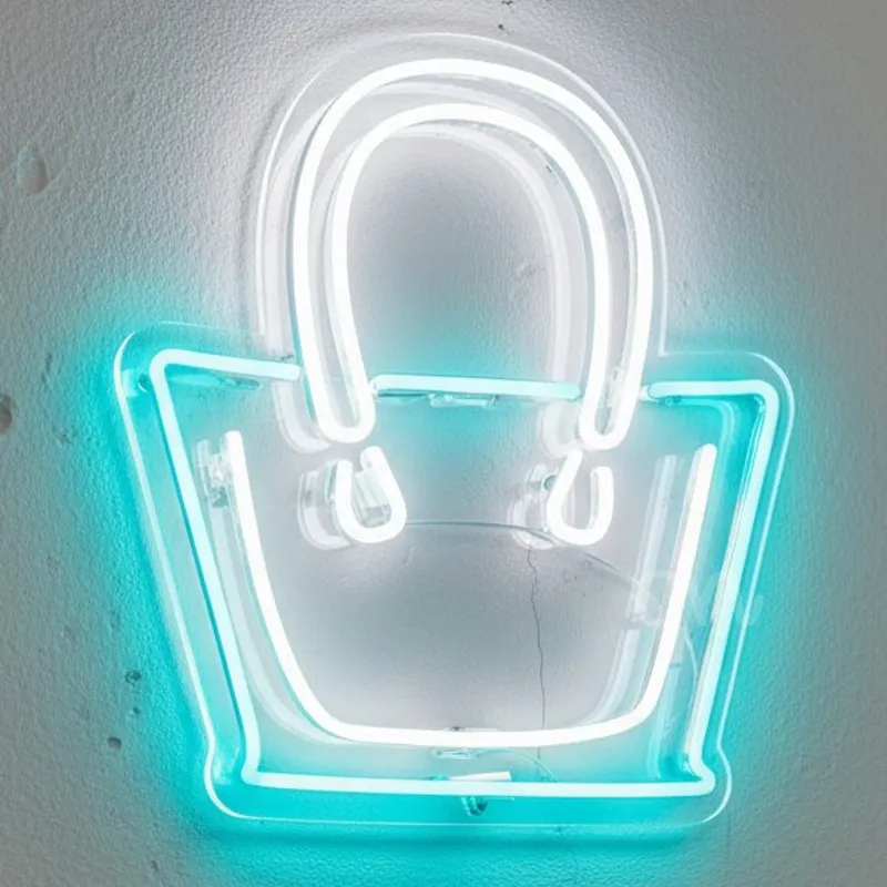 This tote handbag neon sign in bright blue with sleek white accents is designed to add elegance and a fashionable glow to any space. Measuring 20x19, it captures the classic tote handbag silhouette, making it perfect for boutiques, beauty studios, retail shops, and home decor. Its structured outline paired with LED illumination transforms ordinary spaces into stylish, Instagram-ready environments. The bold blue tubing defines the handbag shape, while the white accents highlight the handles, creating an authentic and modern look. Whether used as a boutique sign to attract customers, a home decor piece in a walk-in closet, or a glowing accent at fashion-themed events, this neon sign delivers both charm and functionality. Crafted with durable, energy-efficient LED tubing, it mimics the nostalgic glow of traditional neon without the fragility, high energy use, or heat output. Safe for continuous use, it’s ideal for commercial settings, bedroom walls, vanity corners, and event styling. The lightweight design makes it simple to install and move, offering endless possibilities for creative placement. From retail branding and photo backdrops to personal interior decor, this handbag neon sign is a versatile and stylish addition. Its perfect proportions ensure it makes a statement without overwhelming your decor, balancing trendy appeal with practical lighting. Whether you’re a boutique owner looking to highlight your fashion-forward brand or an individual who wants to infuse personality into your room, this 20x19 tote handbag neon sign with blue and white LED accents is the ultimate decor upgrade that combines modern style, safe technology, and lasting durability.